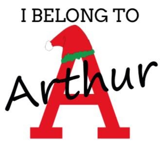 Personalised name and initial with an elf’s hat is printed directly on to the elf’s belly below the words “I BELONG TO”.