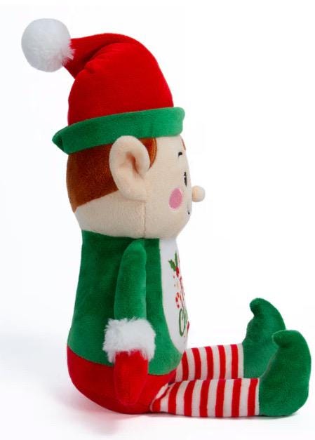 Crafted from recycled materials, this eco-friendly elf is soft and huggable.