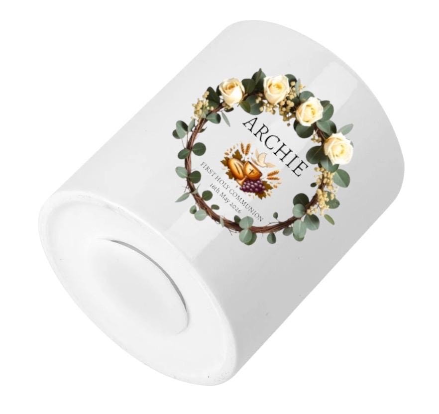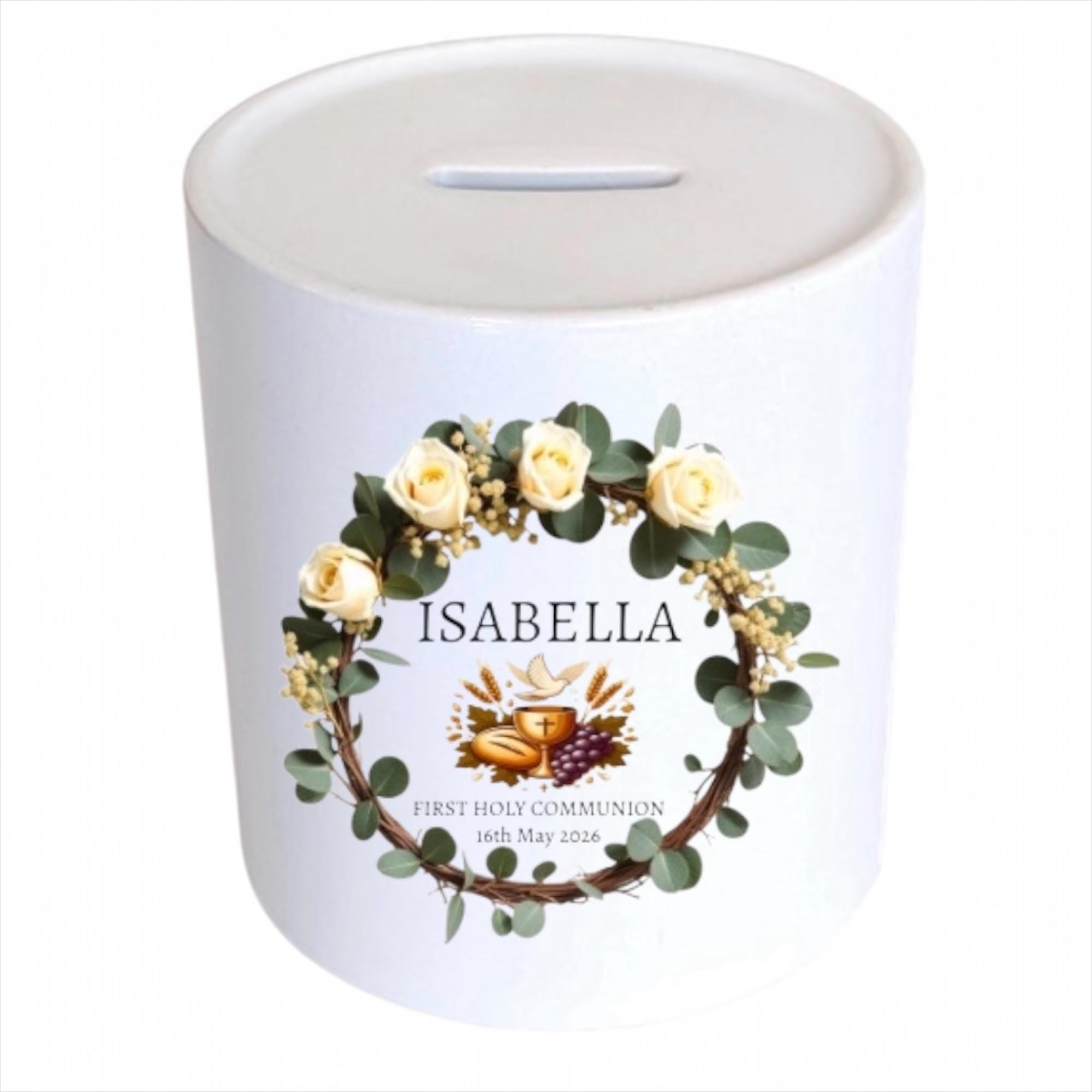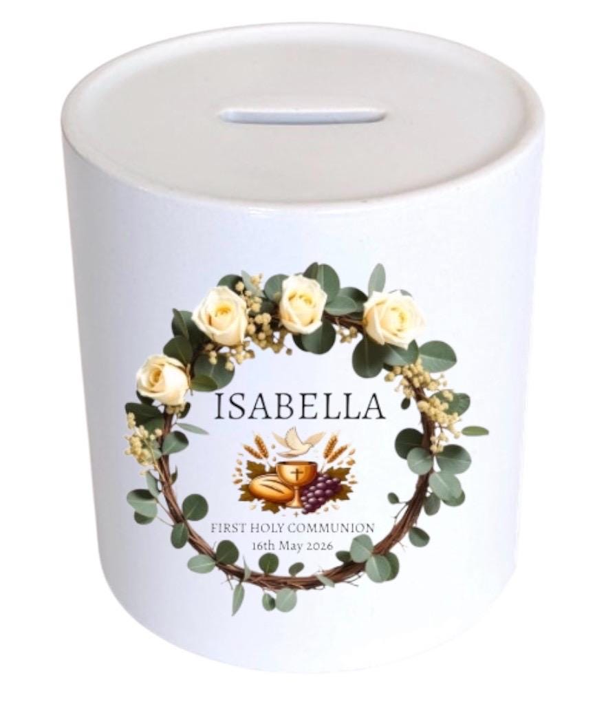 This personalised ceramic money box is an ideal gift for children celebrating their first holy communion.